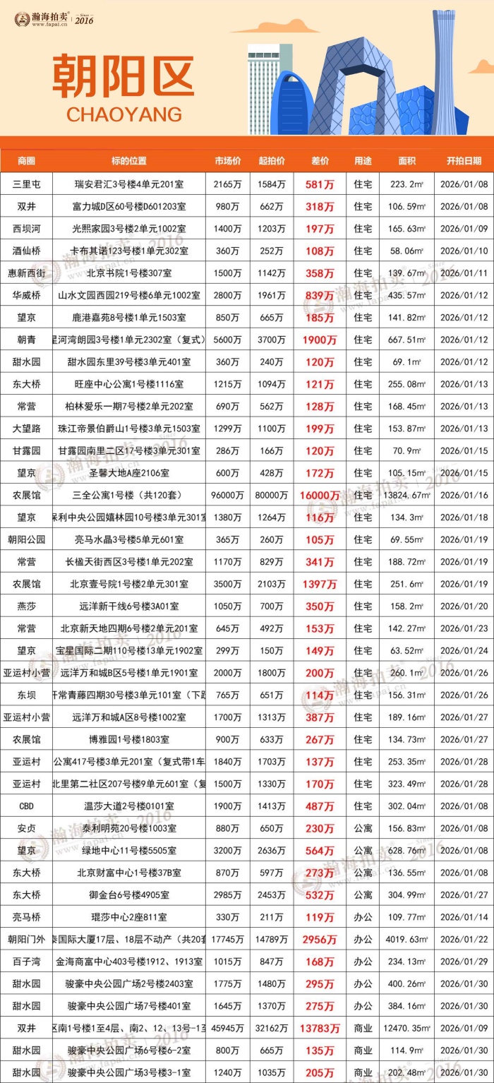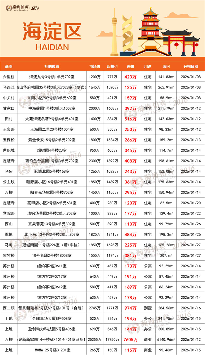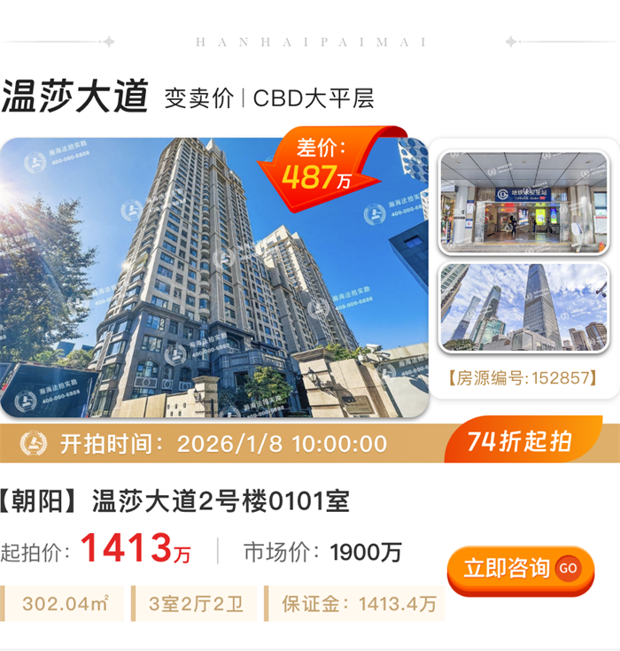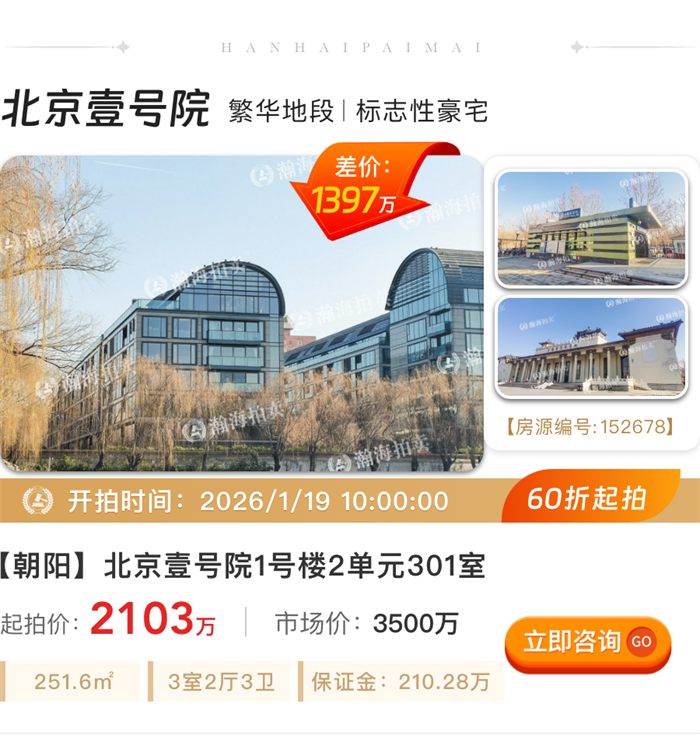 抢占2026置业先机,新年第一份“京拍房礼单”已经准备完毕,远洋新干线、海淀九号、大苑海淀名著140㎡以上大户型总价700-900万上拍,北京壹号院直降1397万上拍!