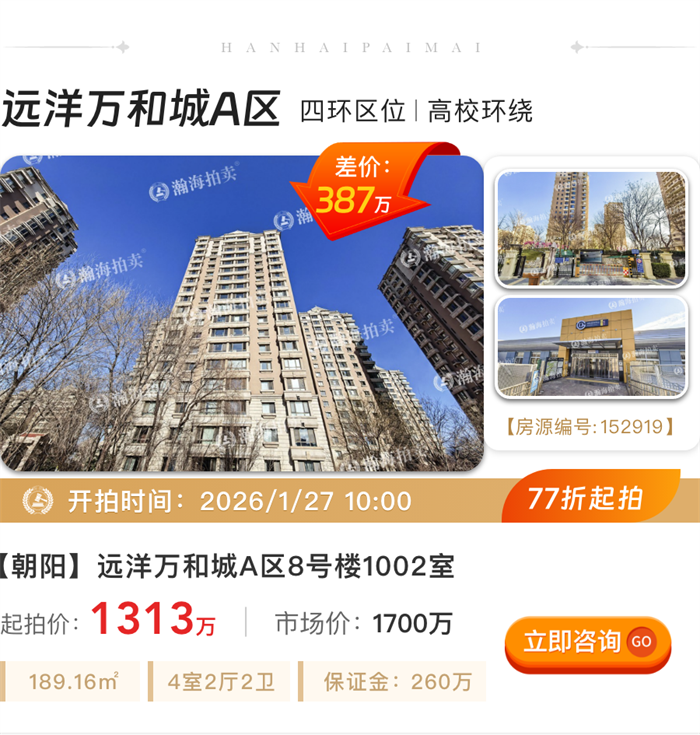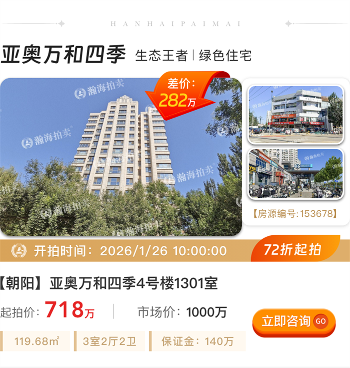①实景现房:丽都悦府位居东四环,邻近望京商务区,接壤燕莎使馆区,是2022年建成的精装修实景现房,上拍房源为开发商新房。