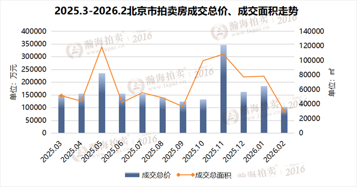 2月,北京拍卖房成交总金额10.33亿元;成交总面积3.04万平方米;成交房源总市值13.37亿元,为购房者节省释放3.04亿元购房款。